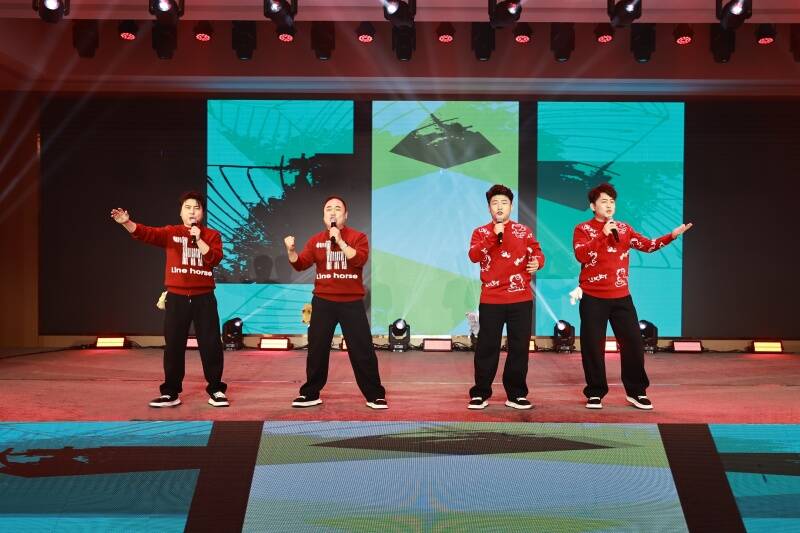 盛典开场舞蹈《万马奔腾》,以激昂的旋律和矫健的舞姿,生动诠释了赵楼人一往无前、奋勇争先的精神风貌;歌曲《我们是太阳》高亢嘹亮,唱出了赵楼人“开采光明、温暖四方”的使命担当,更唱响了在地心深处追逐光、成为光的坚定信念;音乐快板《阳光赵楼一定行》细数了矿井过去一年攻坚克难的生动实践和亮眼成绩,将“能吃苦、肯担当、勇创新、善作为”的赵楼精神特质展现得淋漓尽致。