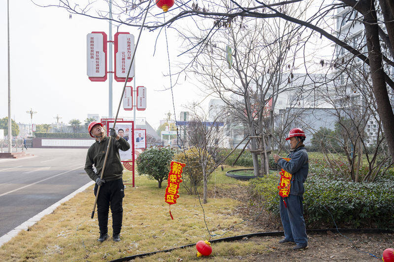 立春时节,寒风凛冽,给户外装饰工作带来了不小挑战。但工作人员不畏严寒、迎难而上,克服低温天气对安装作业的不利影响,分工协作、有序推进,有条不紊地开展挂件悬挂、灯带铺设等工作。从家属区主干道到工广区各个角落,他们顶寒风、冒严寒,细致完成每一处装饰布置,用坚守与付出为职工群众送上新春的美好期许。