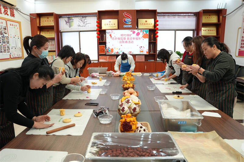“张姐,你这元宝肚儿圆滚滚的,是不是偷偷多包了福气?”“快看我做的‘福袋’,像不像咱下井带的那个安全锦囊?”……说笑间,大家手上不停,交流技法、唠唠家常、谈谈新年打算。往日分散在不同岗位的姐妹,在这面团与笑声交织的烟火气中,心贴得更近。