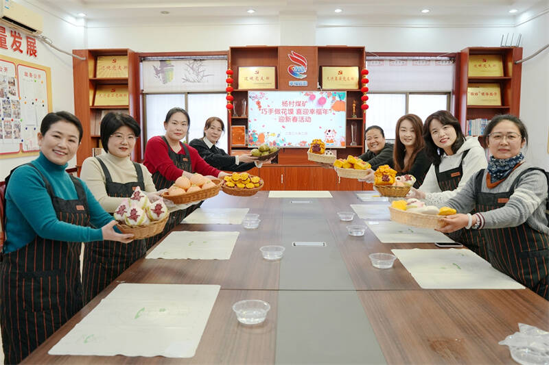 腊月寒天,杨村煤矿综合服务中心活动室内却暖意盎然,笑语满堂。空气中飘散着面团的甜香,长桌上铺满了五颜六色的彩面——近日,一场由该矿综合服务中心组织的“巧手做花馍、喜迎幸福年”迎新春活动正热火朝天地开展。一双双巧手揉捻、捏塑、雕琢,将对新年的期盼与祝福,一点一滴揉进面团里。活动现场俨然成了一座创意十足的“面艺工坊”。平日里忙碌在各自岗位的女职工们,此刻个个化身“面点魔法师”,让寻常面团实现了“华丽变身”。
